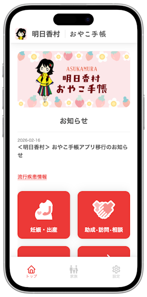 詳細は「明日香村子育て支援アプリ あすかっこ!」TOPページに表示されているご案内をご確認ください。
